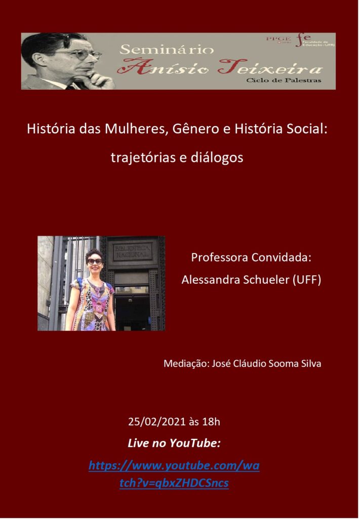 eventosseminárioSeminário Anisio Teixeira 2021.112 de fevereiro de 202112 de fevereiro de 2021 Professora Alessandra Schueller fala sobre história social das mulheres. Não perca!